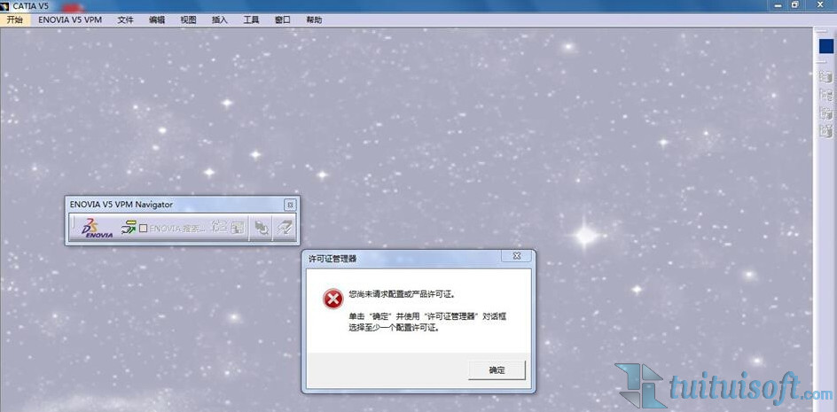 接着打开软件之后出现一以下的对话框,提示尚未请求配置许可证