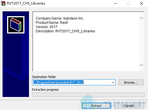 2、双击压缩包进行解压,解压后弹出一个文件路径放置的对话框,在这个对话框当中尽量不要去更改它的文件路径,除非Revit软件安装在其他路径