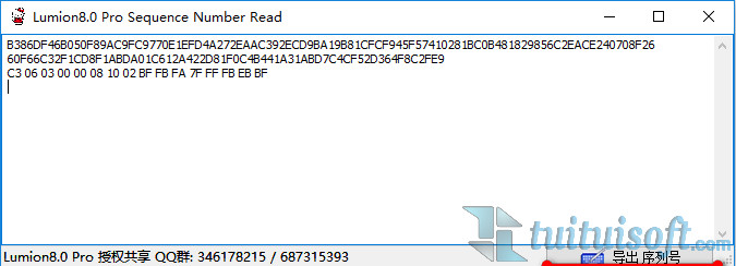 双击后出现一下的对话框,选择“导出序列号”,出现填入账户就随便填入一个即可。至于为什么要选择导出序列号呢,因为现在lumoin8只是试运行的状态,一个账户只有一个激活码,所以每次打开软件的时候都要以之前导出的激活码进行激活使用。所以激活码要导出保存好,接着导出“TXT”格式即可