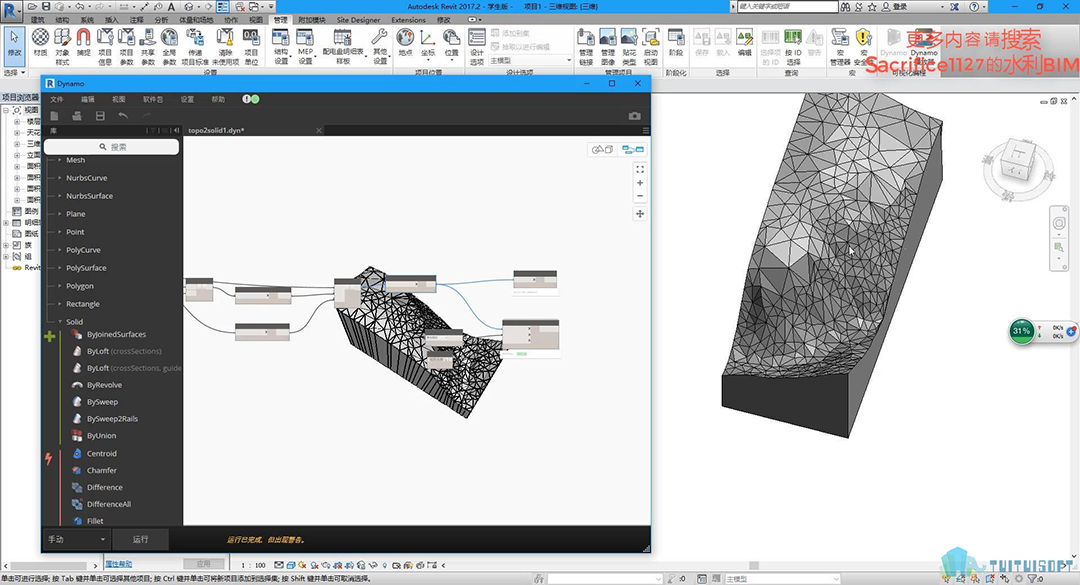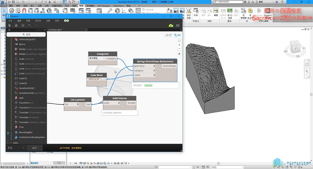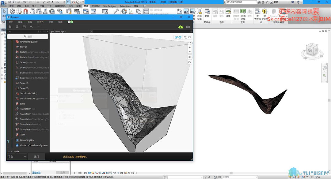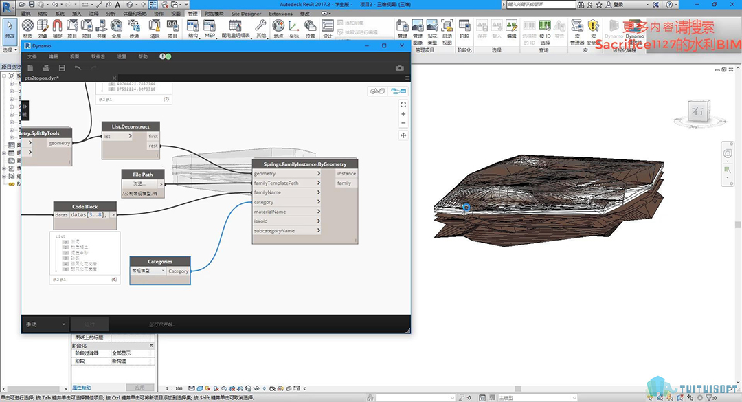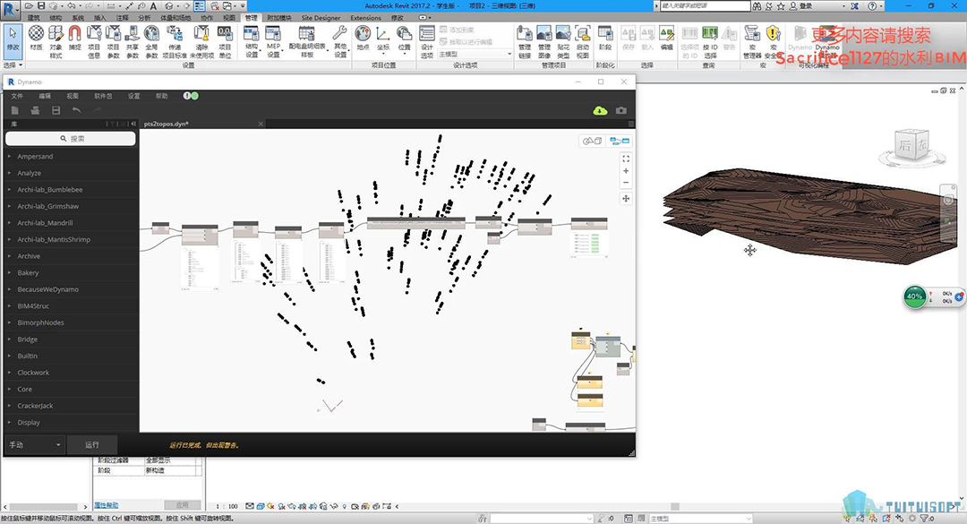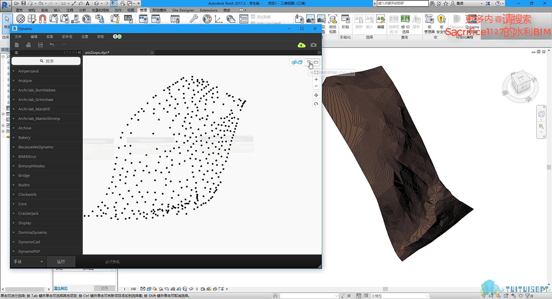 本套课程与之前《Dynamo+Civil3d创建简单的地质模型研究》有些类似,但不同点在于这套课程全部是由Dynamo格式化编程来实现的,为了方便大家在revit上进行建模或者模型整合更为便利一些。