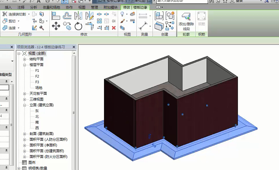 2、高级知识:楼板边缘应用及编辑,创建边缘轮廓族,斜老板的创建方法研究,楼地面做法研究。