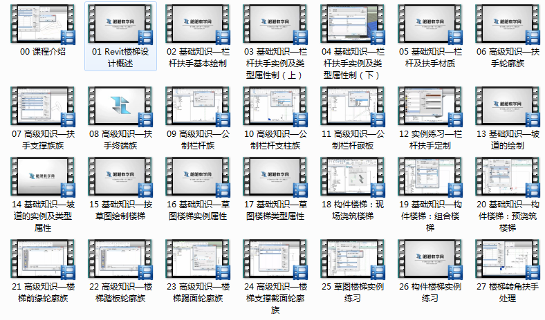 2、高级知识:深入学习,草图楼梯、构件楼梯的属性及基础功能,同时深入定制构件楼梯的各个组件,达到想要的效果,课程还讲解了栏杆扶手的高级定制,楼梯转角扶手的处理、坡道命令的详细用法