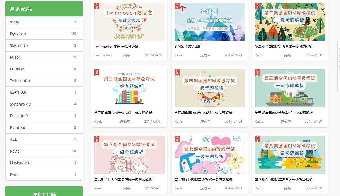腿腿教学网以BIM教学课程为主,目前涵盖BIM个方面课程107个2000+视频资源