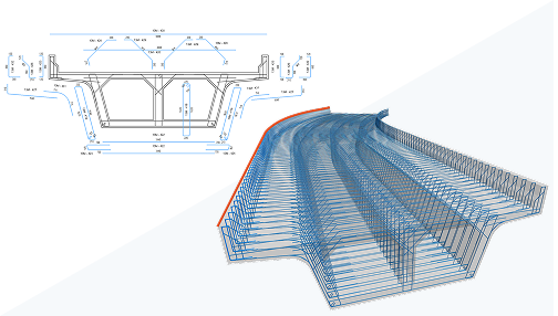 使用新的基于路径的三维曲线分布,沿复杂的双曲线混凝土图元对横向钢筋进行建模。保持一致的钢筋几何图形,同时自动适应主体更改。