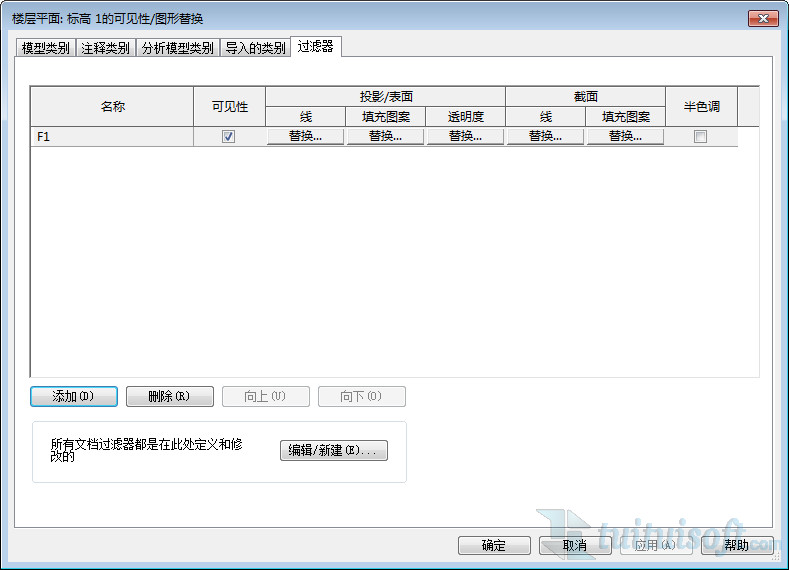 添加新建的“F1”过滤器,可以适当的修改显示为“替换”的这些参数,比如线型、填充颜色、透明度等都可以在这里设置。
