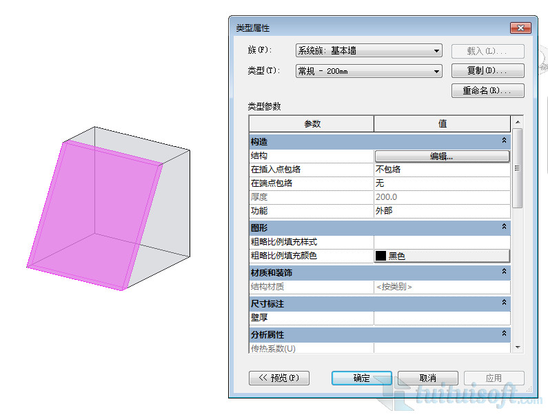 3、通过面墙创建的斜墙和常规墙一样能够进行结构的编辑