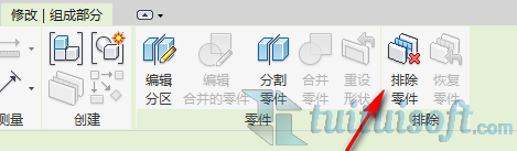 草图编辑完成后回到三维视图里查看发现还没有切割成,选择之前切割好的梁的形状,在修改工具栏里选择“排除零件”则就完成了切割。