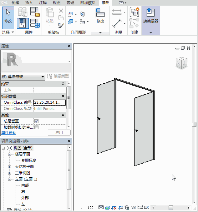 许多旁友在进行幕墙创建的时候都会碰到要在幕墙上开门的情况,而门族是不能直接放置在幕墙上的。