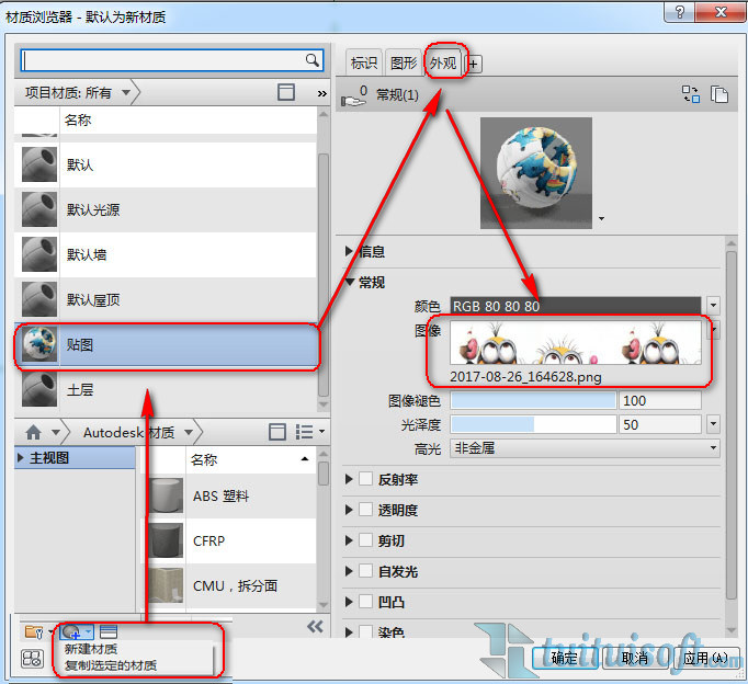 在属性栏里点击“族类型”新建参数命名为“贴图”