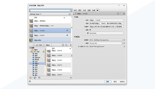 支持碳参数作为 Revit 材质上的资源。